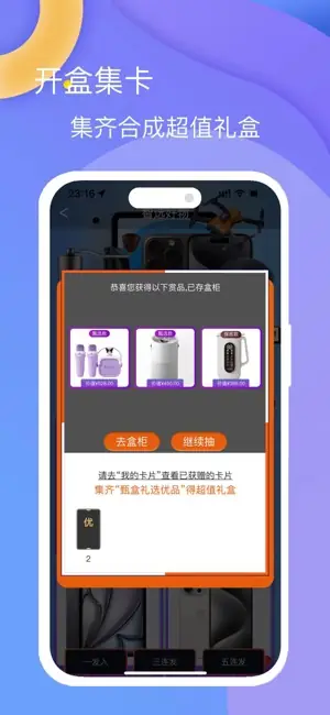 You'll experience endless fun from opening mystery boxes. Each box hides an unknown surprise, and upon opening, you may randomly receive a card. When you collect a specific set of cards, you can redeem them for valuable luxury gifts! Whether it's trendy collectible figures, premium electronics, practical home essentials, or coveted devices like smartphones and tablets—anything could be yours.