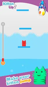 子猫アップ!シンプルで魅力的なプラットフォームゲームです。指で押すだけで、猫はジャンプして次のプラットフォームに到達します。ゲームの Doodlejump に似ていますが、方向については選択の余地はありません。ただし、生でダブルジャンプ以上できますが、速すぎないように注意してください。そうしないと、到達できない可能性があります。溶岩、水、恐ろしい捕食者などの多くの危険だけでなく、多くの障害物が関係しています。あなたのスキルを試すユニークな子猫ゲームの挑戦をお楽しみください。